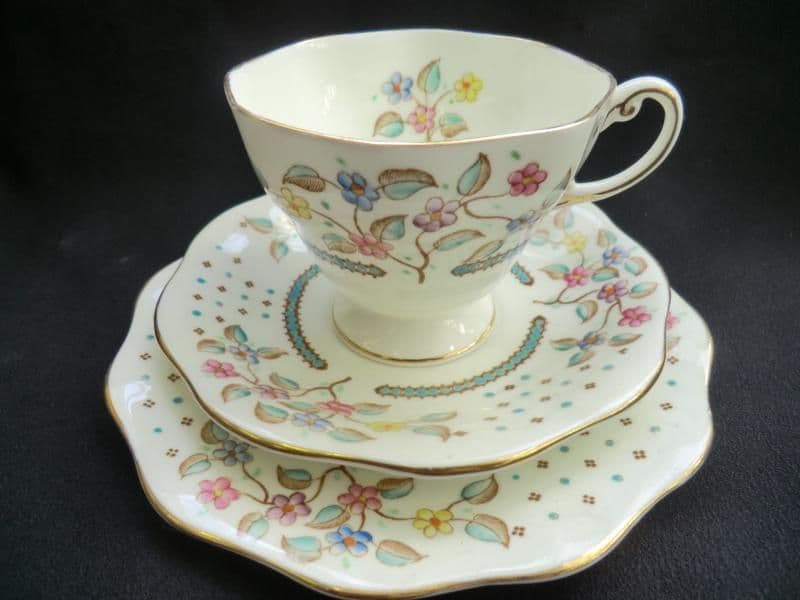 Pale Honey glaze with stylised flowers and abstract designs. pastel shades.